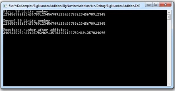 | Console.WriteLine("\n\nResultant number after addition: "); | |