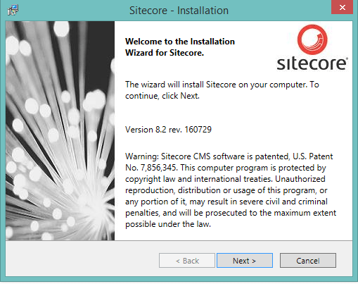 Step 1: Unzip the downloaded file, and run the Sitecore 8.2 rev. 160729.exe file, and click on Next ->.