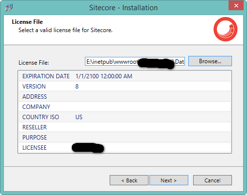 Step 5: Select the Sitecore license file. I do not have much information on how to get the license file. I am using my firm (Sitecore Platinum Partner) license file. I guess for individual developer, there is a Student trail license which is valid for one month.